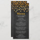 This rustic and grunge wedding menu features gold leaves on a charcoal black distressed background. The text combines italic and serif fonts for a modern and stylish look. This will be perfect for autumn fall weddings.