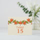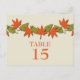 Simple and elegant Autumn Leaves Border Table Number Postcard featuring a row of rustic fall leaves in orange and green. This chic design is perfect for your autumn wedding! Easy to customize, simply add the appropriate table number(s) in the text field provided. To find additional personalization options, click on "Customize It."