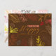 This customizable Thanksgiving postcard is a warm hug in the mail. The front features a rich brown background and delicate line-art illustrations of fall leaves and berries in autumn colors. The back offers a clean, white canvas framed by the same design, with space for a heartfelt message and address. It's a personalized token of gratitude that will be cherished.