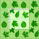 A pattern of assorted autumn leaves, digitally enhanced and colored - deep emerald green leaves on a pale lime green background