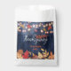 Adorn your Thanksgiving favors with this stunning customizable bag. The design features a backdrop of deep navy wood, beautifully illuminated by glowing fairy lights and adorned with a scattering of vibrant watercolor leaves. The phrase "Happy Thanksgiving" is a welcoming focal point, with space to personalize with your family name. These bags are the perfect rustic-yet-elegant finish for your holiday celebration.