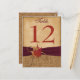 This rustic autumn table number post card, in fall colors of burnt orange, rust, gold and brown has images of three dried maple leaves on it with a PRINTED twine bow and dark burgundy wine PRINTED ribbon, and a FAUX burlap sack background with an aged burnt paper look overlay on it that matches the wedding invitation shown below. ****You MUST change the number 12 to each number that you need, add it to your cart, then return and repeat the process for all the numbers you need. It would be perfect for a couple wanting to have a casual or informal rustic country wedding. All the text is customizable.****PLEASE NOTE if you change fonts, or the size of the font, some of the design and/or text may get cut-off. Everything will print as you see it on your monitor. I will not see your card, and Zazzle will NOT correct anything (typos, mis-alignment etc.). The text is all customizable. If you need help with this card, please email me BEFORE you place your order. If you require any other matching items, please email your request to niteowlstudio@gmail.com.