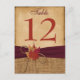 Autumn Leaves FAUX Burlap Table Number Card - Wine