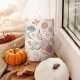Fall in love with the perfect combination of beautiful fall foliage, autumn flowers, festive dried leaves, and pumpkins with our fall-style cozy chic home pillar candle. Our design features our original hand-drawn fall leaves, flowers, pinecones, and pumpkin pattern design. Personalize with your family monogram and transform your space into a cozy sanctuary for unforgettable Thanksgiving gatherings and fall home decorating. Illustrations are hand-drawn original artwork by Moodthology Papery.