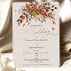 Celebrate your special day with this elegant autumn-themed wedding invitation, featuring stunning watercolor artwork of fall foliage. The front of the card showcases a beautiful arrangement of burnt orange, rust, and golden leaves, accented with luxurious gold foil script that adds a touch of sophistication. The back of the card continues the autumnal theme with a complementary design of vibrant fall leaves and flowers. Perfect for an autumn wedding, this invitation captures the essence of the season with its warm colors and elegant details. Ideal for couples looking to bring the beauty of fall into their wedding celebration.