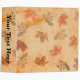 Maple and oak leaves turn color and fall across a grungy background. This style has the spine decorated with the same leaves and background, with your text printed over it.