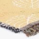 A quality printed throw has its advantages. This is a much finer weave throw than its loopier cousins, and though lighter, it is worth the investment for custom room accessorizing. The back is much prettier than the typical brown, and the fringe on the long sides very vivid, the selvage nicely done. Before photographing, I washed the throw in cold water, delicate, with a thicker woven throw the same size. On tumble dry low, this throw was dry in half the time as the other. This is a very practical quality if you use throws for furniture covers or to wrap up in frequently. The sleekness of the fabric makes it a great layer for accenting or protecting without the feeling of sitting on too much stuff. Perfect for napping or when you feel a light chill coming on. The color printing is beautiful and on this fabric, matched the design and color of my Photoshop image. This is an advantage for blending room fabrics and colors. The fringe on the short sides prints the colors from the design image and therefore varies from the side fringe. I streaked a white fractal line through the plaid pattern to give the illusion of weaving. This printed as crisp as an illusory thread, and put some white in the short side fringe, showing another advantage of print vs loomed- for artistic purposes, line lines, detail, and color integrity can be planned and preserved. My loomed throws have color limitations and more of a needlepoint texture. Print throws reproduce an exact image. The throw felt a little stiff straight out of the package, but this went away in the first delicate wash. Of course I searched the wash water for ink or bleeding and there was none.