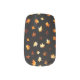 This fall design features various leaves with a fiery texture of orange, red, and brown against a black background.