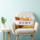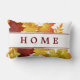 Autumn leaves throw pillow shown in white with a artful autumn leaves print. Text: HOME