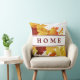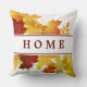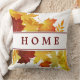 Autumn leaves throw pillow shown in white with a artful autumn leaves print. Text: HOME