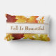 Autumn leaves throw pillow shown in white with a artful autumn leaves print. Text: Fall Is Beautiful.