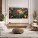 Embrace the beauty of fall with this stunning artwork of autumn leaves. Featuring rich shades of red, orange, and gold against a deep blue-green background, this piece captures the essence of the season. Perfect as frame TV art or for adding a cozy touch to your living space. Enjoy the warmth and tranquility of autumn all year round with this unique digital art.