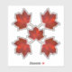 Red maple leaves stickers in the shape of leaves. Five dark red leaves combine in a pattern to make one sticker. They could be cut apart if you wish. Use to decorate envelopes, gifts, favor bags, or scrapbook pages in an Autumn theme.