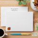 Fall is a good time of year to send a greeting to friends, or to tell your family about the summer vacation. Do it even more personal with your own envelopes. These graphical red autumn leaves will set the perfect mood for you. One single leaf is printed on front and rear, and a full pattern is printed inside the envelope. Three versions exist; golden, red and green, all with matching envelopes, pen and stamps! All text can easily be customized.