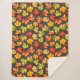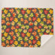 This warm and cozy Sherpa blanket is shown in a fall autumn leaves print design.