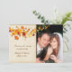 Photo card with colorful Autumn leaves on cream background. Just add your own photo for a special thank you card or announcement. Coordinating pieces available in store.