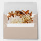 Autumn Leaves Wedding envelope. This elegant and rustic wedding envelope features hand-painted watercolor burnt orange and terracotta leaves, cream and beige dahlias, and beautiful rust-colored roses perfect for a fall or autumn wedding! The back of the envelope has the bride and groom's return address. This design is part of the Autumn Romance collection that can be viewed by clicking on the above collection link.