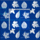 A pattern of assorted autumn leaves, digitally enhanced and colored - white leaves on a deep cobalt blue background