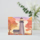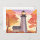 Autumn Lighthouse | Fall Foliage Watercolor Postcard