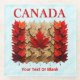 Canada's national maple leaf flag, formed from fallen Autumn leaves, on a snowy background image. Text reading, "CANADA" appears in red above the flag. Customize by adding your own additional text.