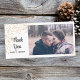 Customize the natural Autumn Maple Leaf Edge Thank You Photo Card with your own personal picture, names and text. Suitable to use for gifts received after a September, October or November Fall or Autumn birthday, bridal shower or wedding. This elegant custom autumnal thank you photocard features a maple leaf design in gradient brown tones adorning the corners with a white background.