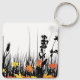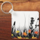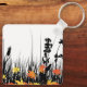 Autumn Maple Leaves and Wild Grass Silhouette Keychain