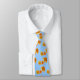 This tie features three maple leaves in glorious fall colors of yellow, gold and orange set against a sky blue background.