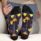 This fun Halloween socks are bright and colorful. The small print is crisp and shows the fun details. The softness of the socks feels nice on my feet and ankles. .