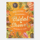 Bridal Shower / Wedding Welcome Sign Foam Board Templates - Elegant Autumn Maple Leaves, Pumpkins and Sunflowers Watercolor Flowers on Orange Gradient Background.