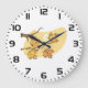 Autumn Maple Leaves with Branches and Sunset Large Clock
