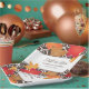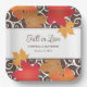 Elevate your fall reception table with this paper plate featuring the full bold maple leaf and brown scrollwork pattern framing the "Fall in Love" monogram band. The couple's names and date are displayed in elegant script between the vibrant autumn borders. Ideal for dinner, appetizers, or dessert at your seasonal celebration.