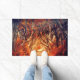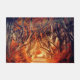 A beautiful fall illustration of maple trees weeping over a golden, sunlit trail in a forest / woods. Perfect for fall, autumn. In colors of orange, yellow, gold and brown.