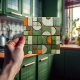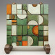 This ceramic tile is a masterpiece of visual complexity, simulating a textured assemblage of shapes and colors reminiscent of an autumnal landscape. The flat surface is a canvas for the faux relief technique, presenting an array of curved and angular forms. Hues of pumpkin orange, creamy ivory, and varying shades of olive and hunter green create a rich tapestry, while splashes of russet and speckled tan add earthy accents. The illusion of depth is achieved through meticulous shading, making the segments appear to pop out as if they were actually raised pieces. This tile, with its crackled glaze effect and intricate design, offers a warm, rustic aesthetic suitable for any space that celebrates the art of trompe-l'oeil and the beauty of fall colors.