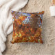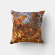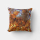 This decorative throw pillow features a geometric abstract pattern of five sided pentagon shaped mosaic tiles in brilliant autumn colors of red, orange, brown, yellow, gold, blue, gray, black and white.