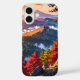 Minimalist anime mountain landscape phone case with vibrant fall colors, misty valleys, and soft sunset light. Perfect for fans of dreamy autumn scenery and tranquil outdoor landscapes.