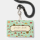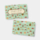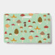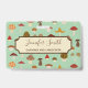 A mushroom pattern on muted green. Name and profession are in a cream box on the front.