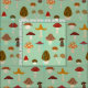 A mushroom pattern in red, brown, orange and green.