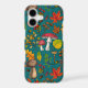 Autumn mushrooms, leaves, nuts and berries on blue Case-Mate iPhone case
