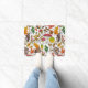 Autumn mushrooms, leaves, nuts and berries on blue doormat