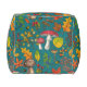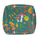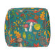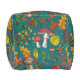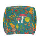 Autumn mushrooms, leaves, nuts and berries on blue pouf