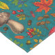 Autumn mushrooms, leaves, nuts and berries on blue tablecloth
