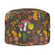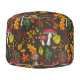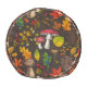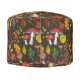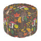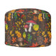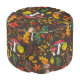 Autumn mushrooms, leaves, nuts and berries on dark pouf