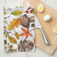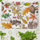Autumn mushrooms, leaves, nuts and berries on whit kitchen towel