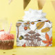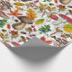 Autumn mushrooms, leaves, nuts and berries on whit wrapping paper