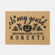 Classic and elegant doormat for fall - "oh my gourd" text with a pumpkin, vines, leaves, and your family name