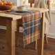 Autumn Orange and Blue Checked Plaid Long Table Runner