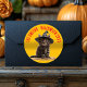Halloween Kitten Stickers | Envelope Seals. These autumn kitten witch Halloween stickers feature a black and orange design with a little cat wearing a witch hat, giving your stationery a lighthearted spooky touch. Perfect for sealing invitations, labeling party favors, or adding a seasonal accent to your crafts.