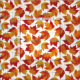 This fabric features a pattern of colorful autumn maple leaves in orange and red on a white background. Perfect for autumn themed craft and sewing projects.