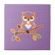 "It's Autumn! Grab this cute polka dot owl for your holiday table. Design includes a large lilac polka dot owl sitting on a branch outlined in white and orange. The background on this adorable tile is lilac with white polka dots."