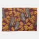 Autumn owls on dark red kitchen towel